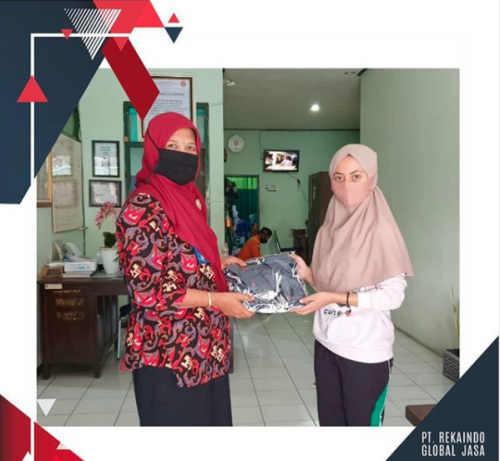 Penyerahan bantuan masker sebagai upaya pencegahan penyebaran Covid-19 oleh PT. Rekaindo Global Jasa kepada pemerintah Kota Madiun melalui Badan Nasional Penanggulangan Bencana (BNPB) Kota Madiun.