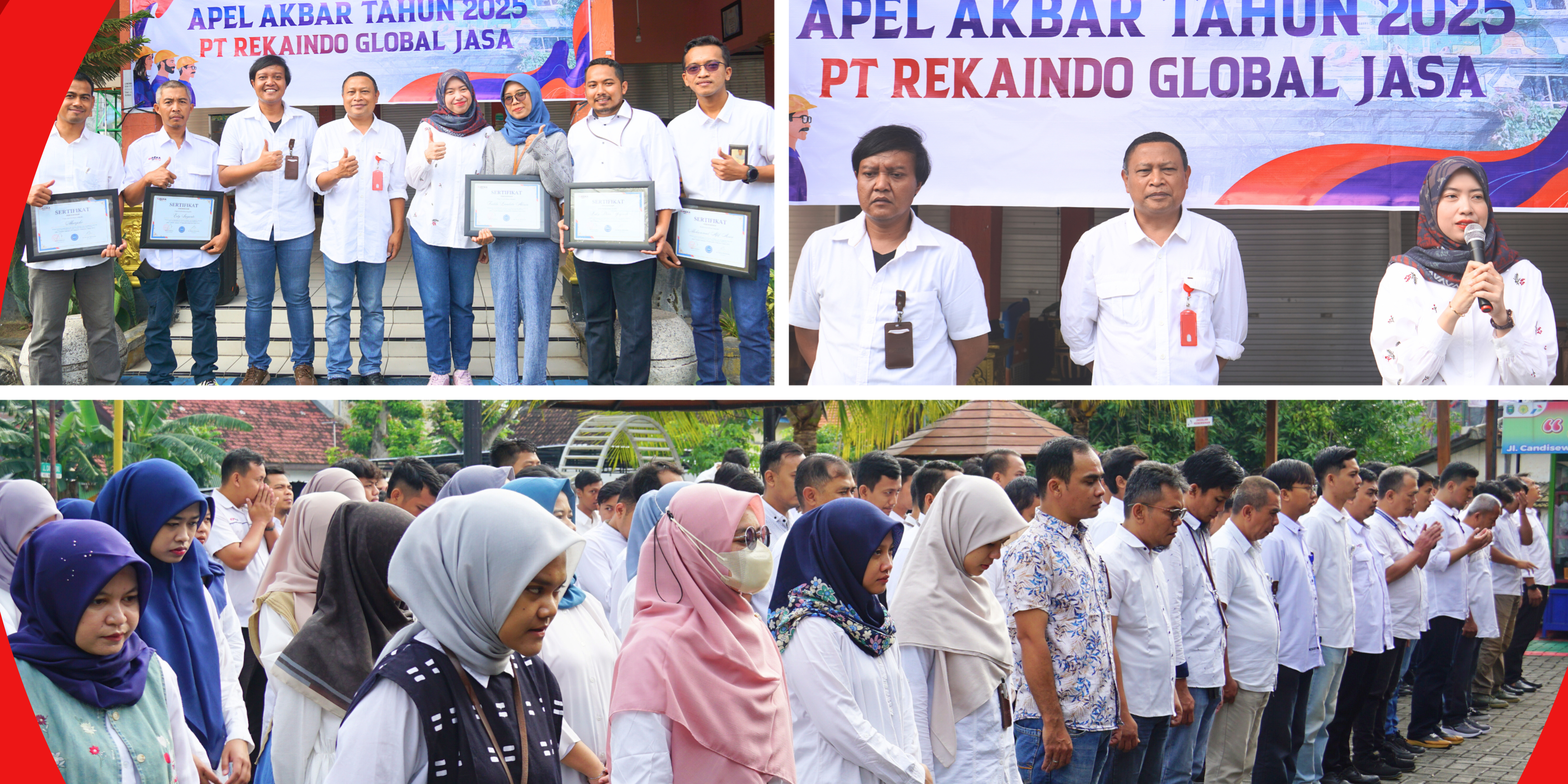 Madiun, 3 Januari 2025 – PT Rekaindo Global Jasa (REKA) menggelar Apel Akbar 2025 yang berlangsung di halaman Lapak Pesona. Acara ini dihadiri oleh seluruh karyawan dari berbagai divisi dan departemen, diisi dengan pesan-pesan inspiratif dari jajaran direksi, penyerahan penghargaan, dan penyerahan ID Card baru secara simbolis.